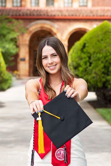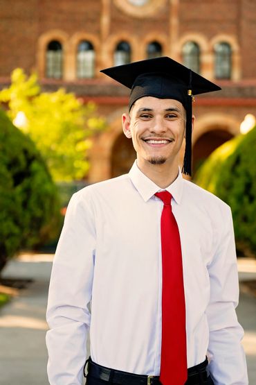 Chico High: Red cap/gown, gold tassel