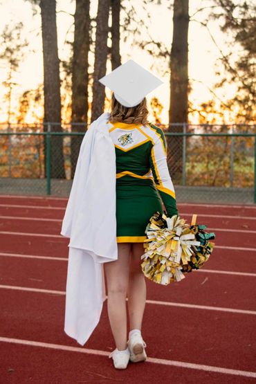 Paradise High: White or green cap/gown, green/gold tassel